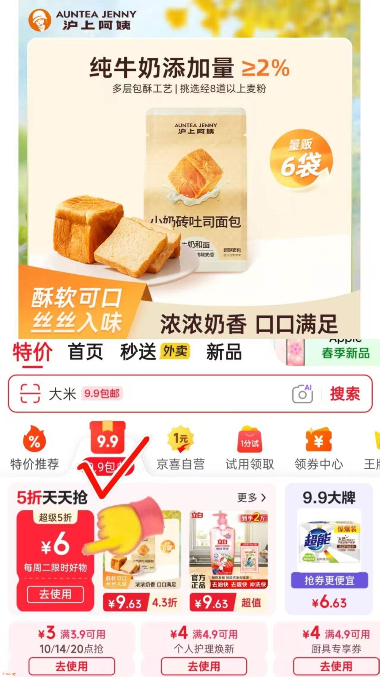 跳app首页9.9包U領15-6劵