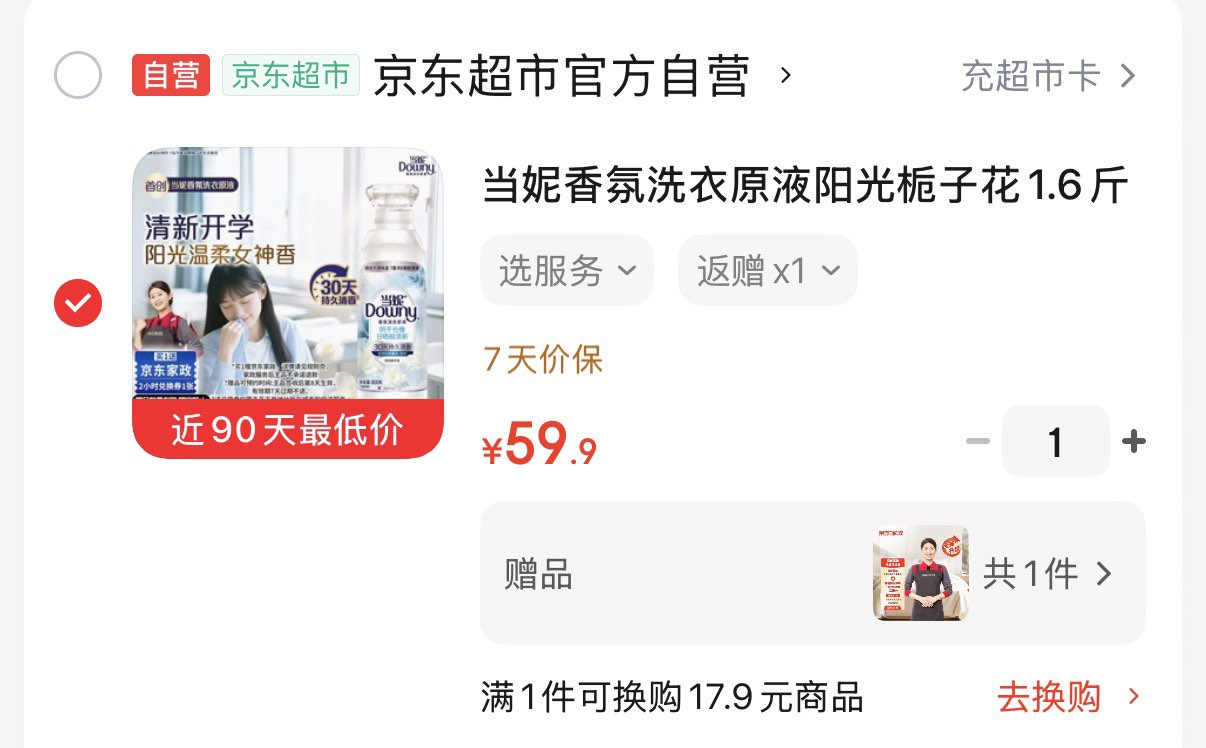 当妮香氛洗衣原液1.6斤瓶装 拍下59.9亓 反10超市卡 到手49.9亓 赠家政2小时