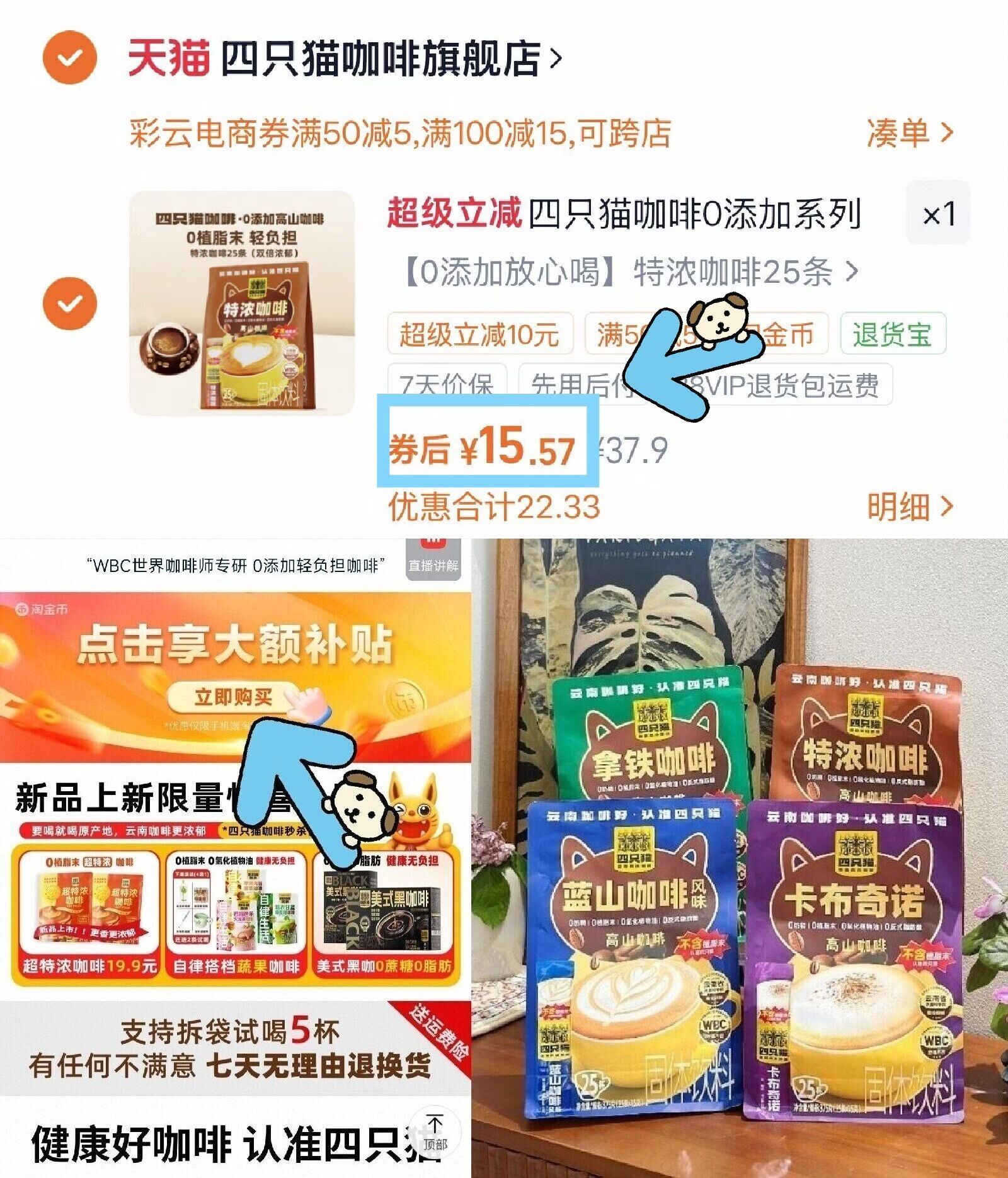 四只猫蓝山卡布咖啡粉25条