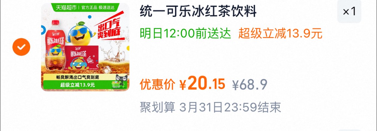 统一 可乐冰红茶碳酸茶饮料680ml*15瓶