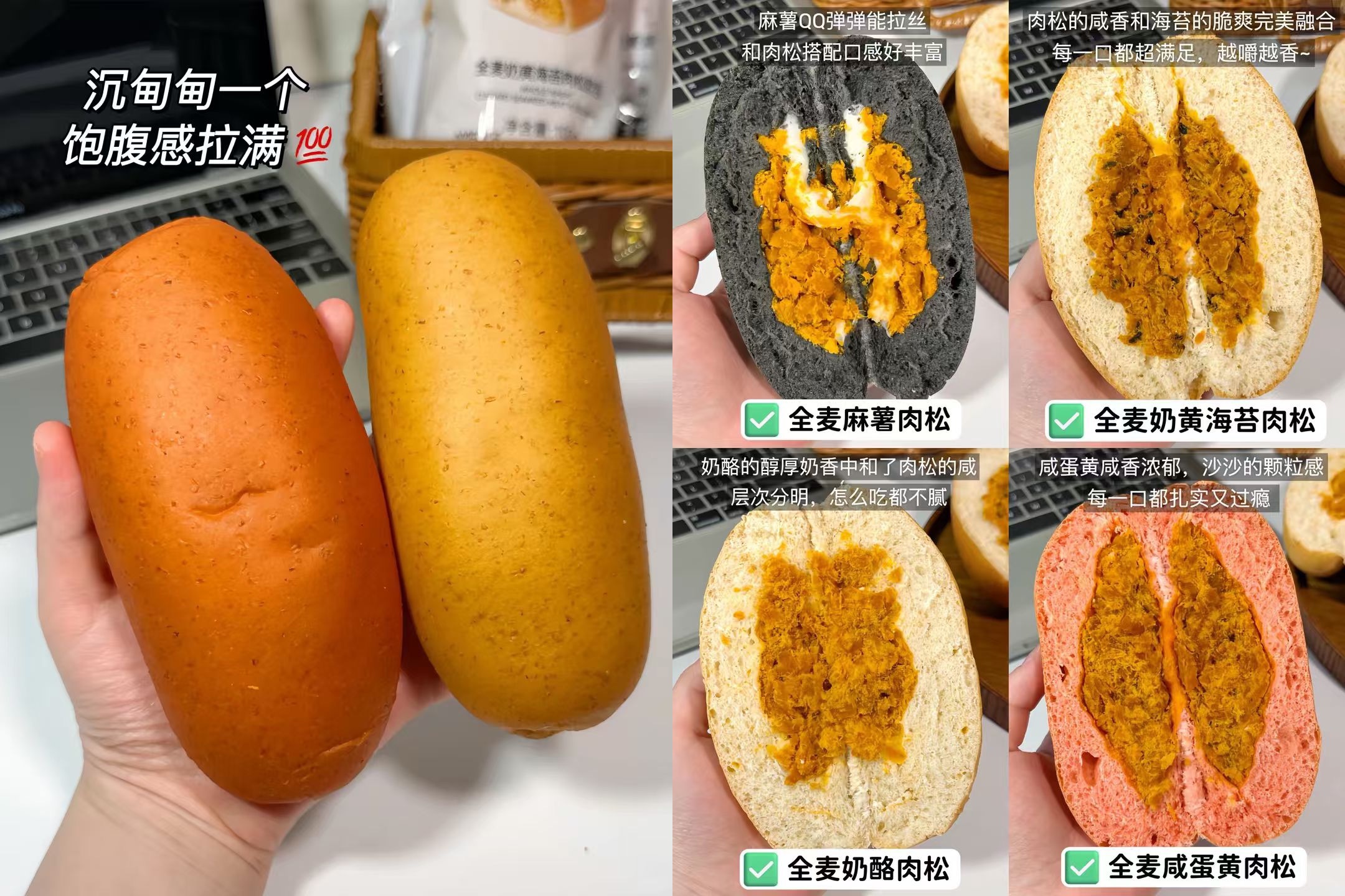 一个足足100g,每个都有肉松