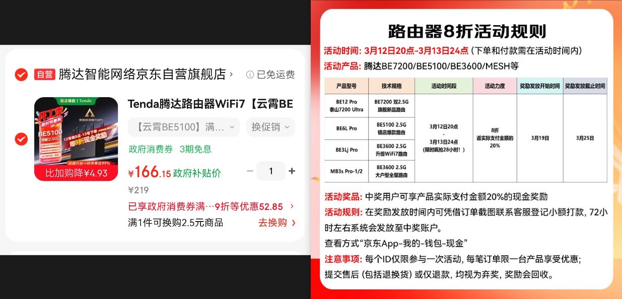 路由器,叠国补【123】含晒返10
