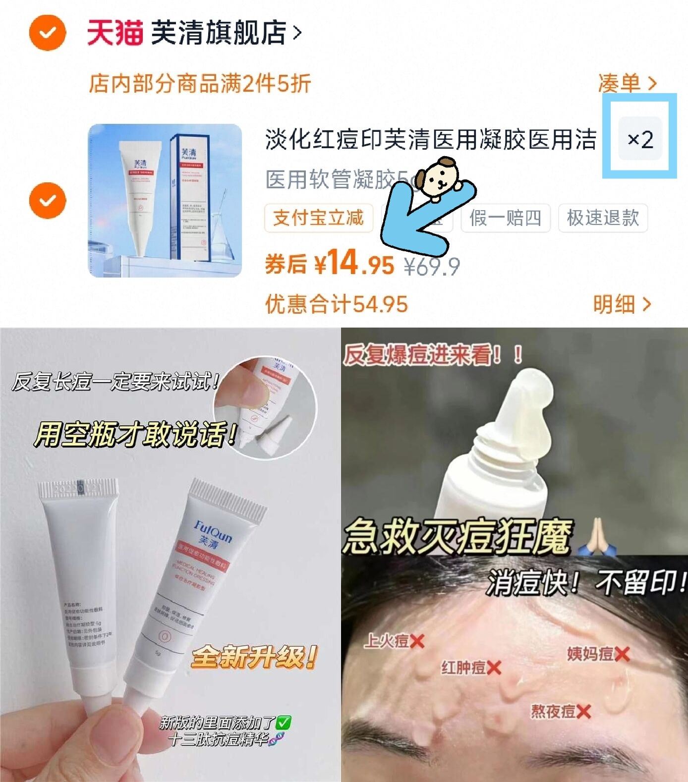 14.9亓/支长痘痘的福音! 拍2支29.9亓!囤上急救用! ---好单发报员2026年03月13日 15:160举报 14.9亓/支长痘痘的福音!拍2支29.9亓!囤上急救用!---【芙清】医用祛痘凝胶2支https://m.tb.cn/h.i4rVu2R医疗械字号!反馈效果不错复制文案