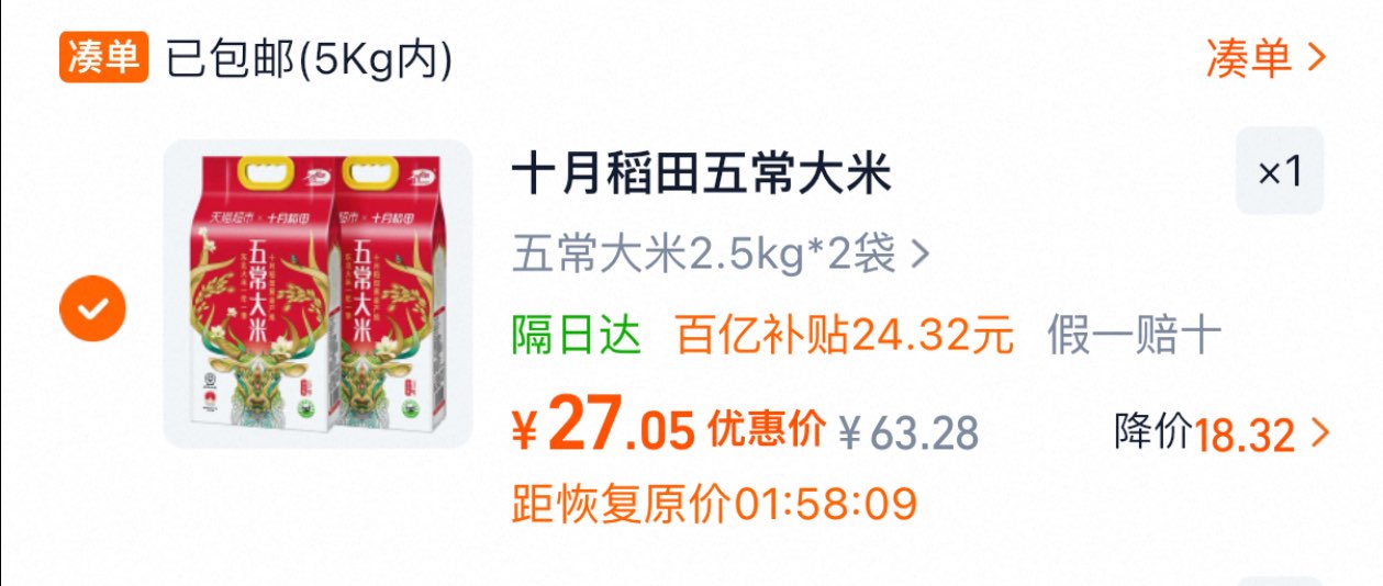 十月稻田 五常大米2.5kg*2袋