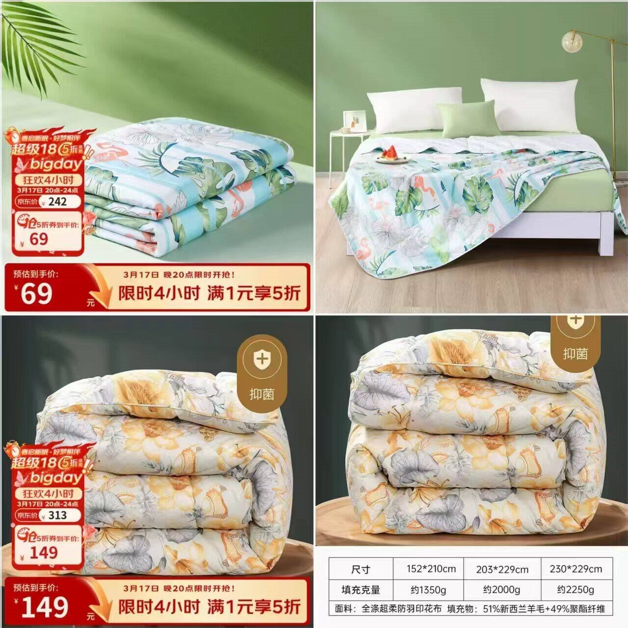 *还有抗菌羊毛被 98元可选