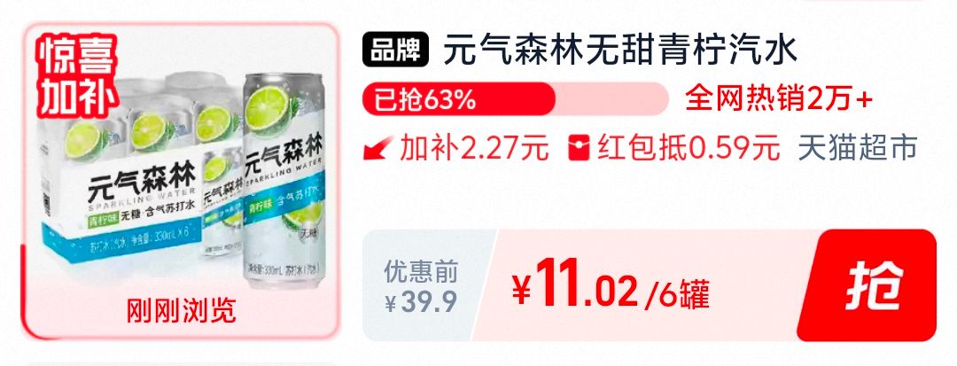 yuan气森林无甜青柠味气泡水330ml*6罐 tb秒殺 11 返3虹包好单发报员2026年03月17日 21:160举报 yuan气森林无甜青柠味气泡水330ml*6罐,tb秒殺,11,返3虹包https://m.tb.cn/h.i5z0b2Z复制文案