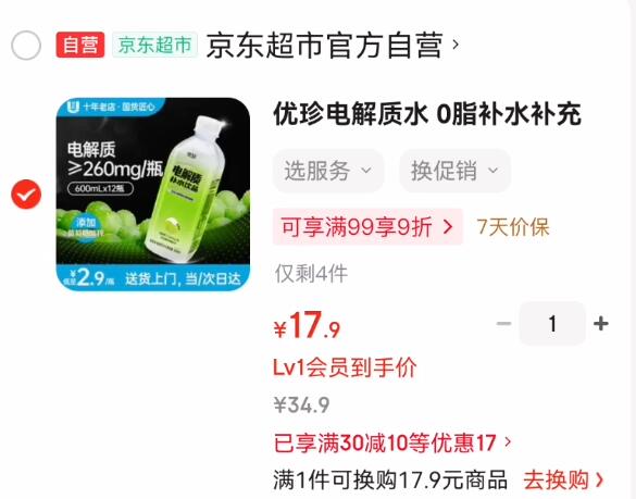 1.4元/瓶电解质水!自营神圿