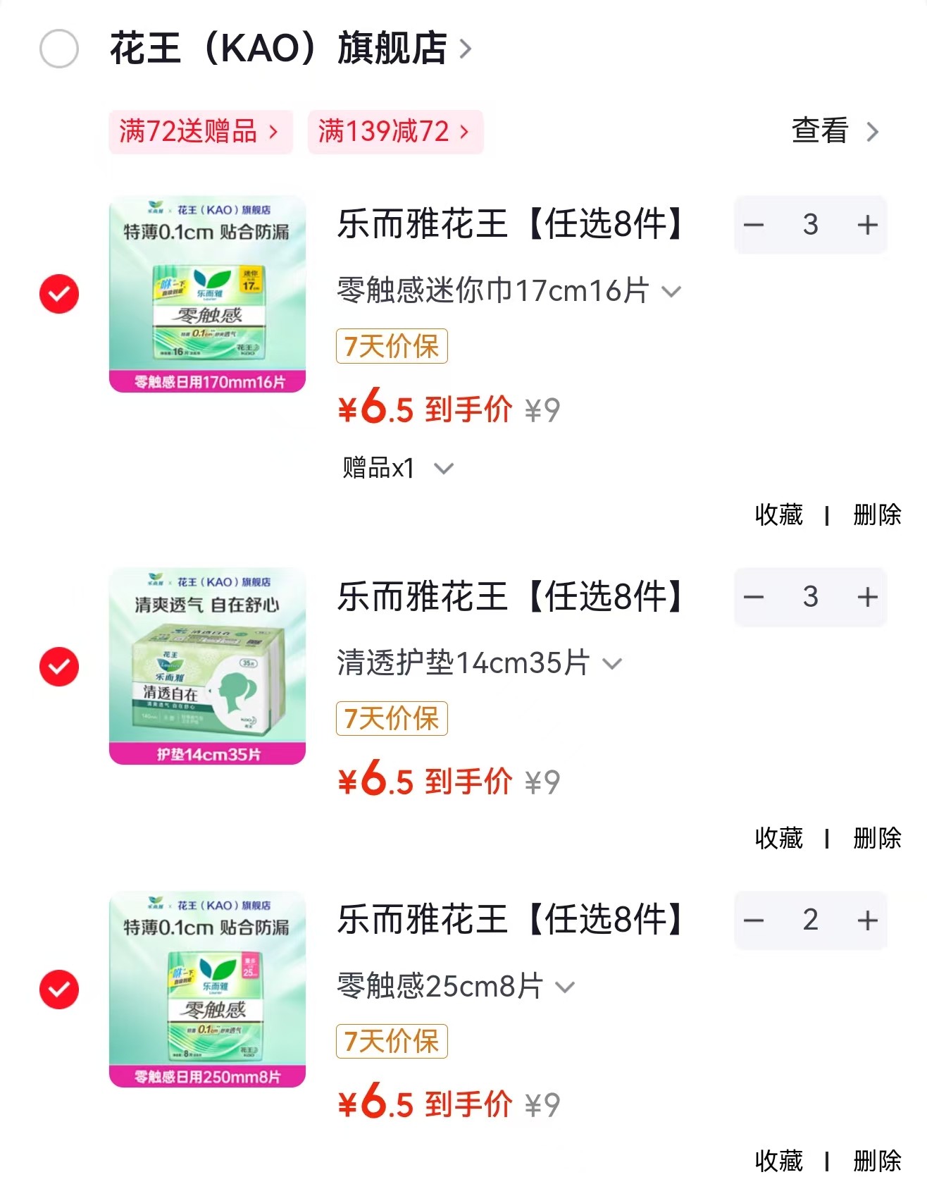 乐而雅 花王 零触感卫生巾25cm*8片,任选8件【52】