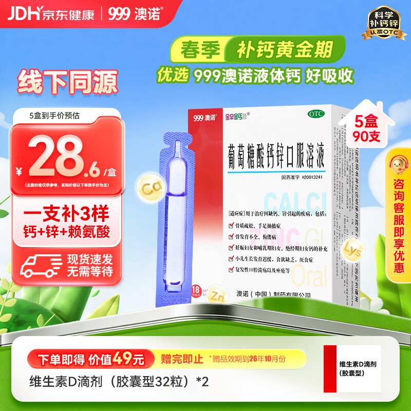 自营澳诺 葡萄糖酸钙锌口服液10ml*90支