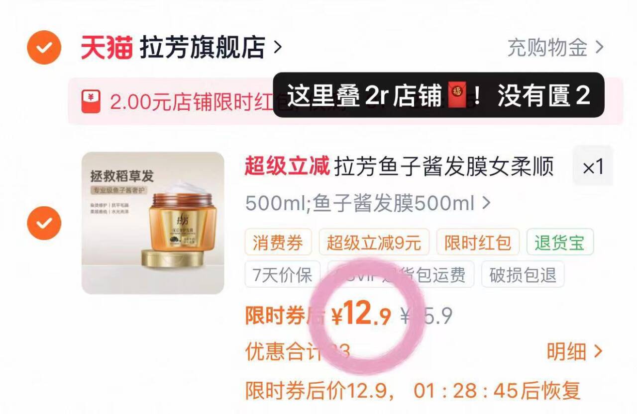 12元拉芳鱼子酱护发膜500ml 第1个选项 我叠了2店铺 好用好单发报员2026年03月21日 12:240举报 12元拉芳鱼子酱护发膜500ml第1个选项!我叠了2店铺https://m.tb.cn/h.iTV6k4d-好用!他家髙偳窾不常活冻!复制文案