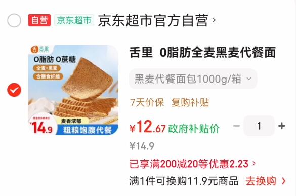 舌里0脂无蔗糖 全麦黑麦吐司1000g