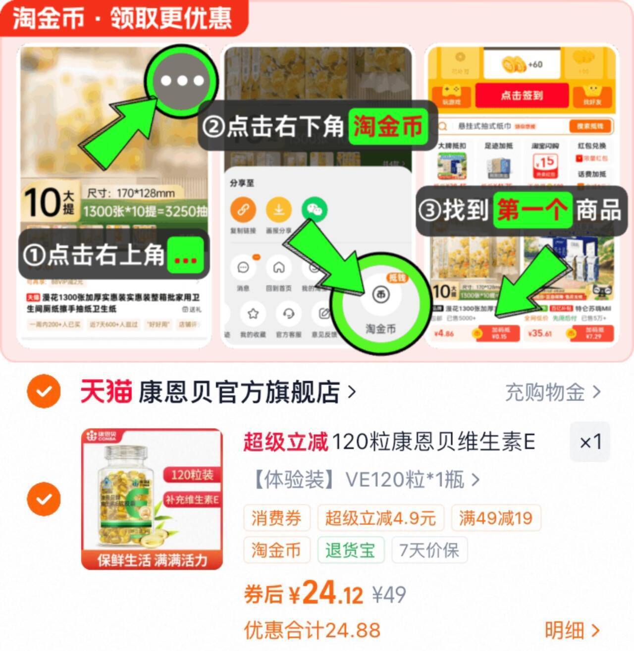 速康恩贝 官方旗见店 维生素E软胶囊120粒 如图叠金币24元折0.2/粒好单发报员2026年03月21日 15:050举报 速康恩贝 官方旗见店维生素E软胶囊120粒https://m.tb.cn/h.igs318z如图叠金币24元折0.2/粒几十年的大品牌很靠谱复制文案