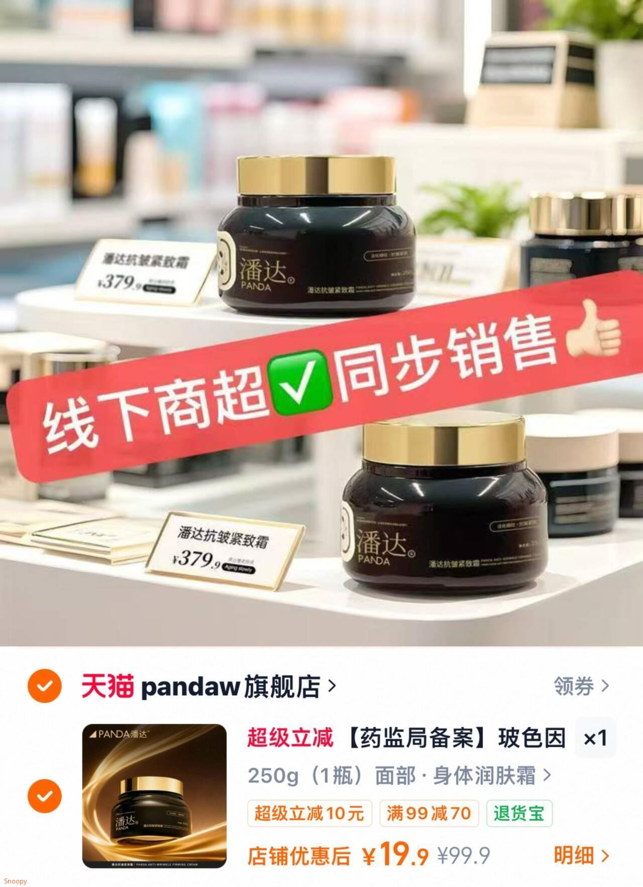 250克面霜 抵平时5瓶容量 算下来一瓶3.9元炸裂吧好单发报员2026年03月21日 16:120举报 250克面霜!!抵平时5瓶容量算下来一瓶3.9元炸裂吧!潘达.玻色因面霜250g19.9元https://m.tb.cn/h.iThhwTt复制文案