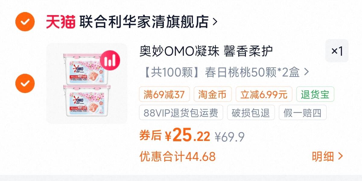 0.25/颗 奥妙除菌洗衣凝珠 50颗*2盒 拍下25.9元 好单发报员 2026年03月21日 17:59 0 举报 0.25/颗 奥妙除菌洗衣凝珠50颗*2盒,拍下25.9元https://m.tb.cn/h.iTixIoK 复制文案