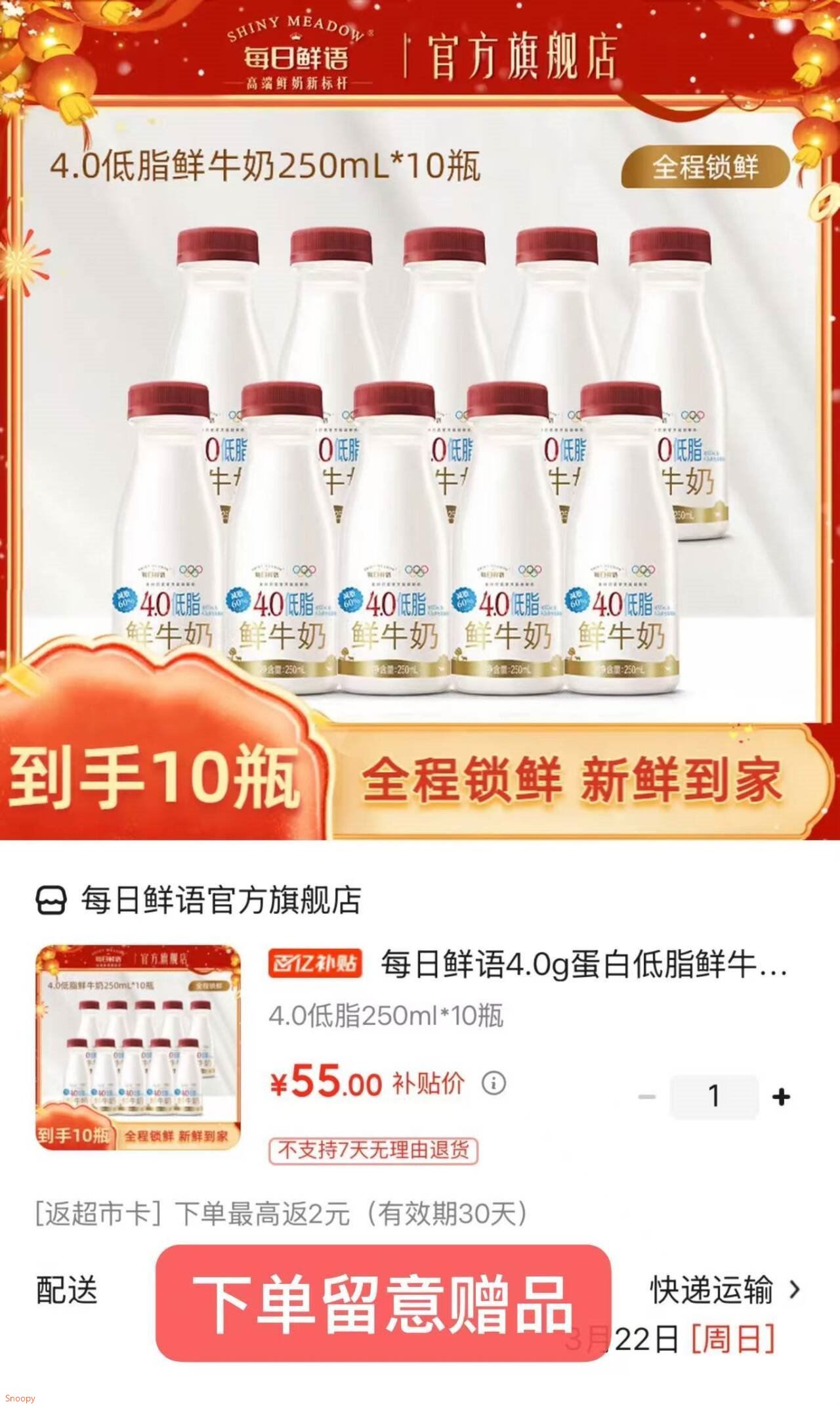 每日鲜语 4.0g鲜奶250ml*10瓶