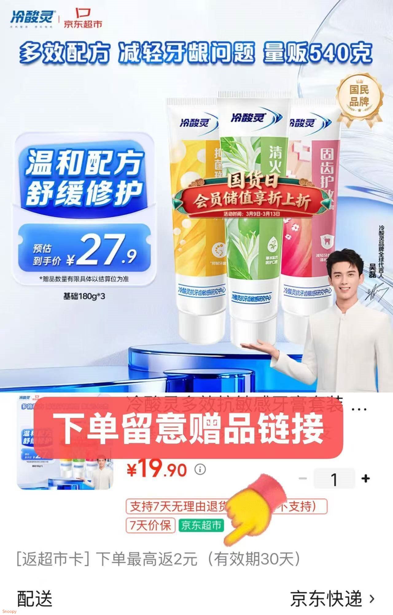 自营 多效抗敏感牙膏540g 15.9元 U plus新客14.9元好单发报员2026年03月21日 23:060举报 ——冷酸灵牙膏发車——【自营】多效抗敏感牙膏540ghttps://u.jd.com/cgueoqL15.9元 U,plus新客14.9元*再反2元超市卡 折4.3元/支复制文案
