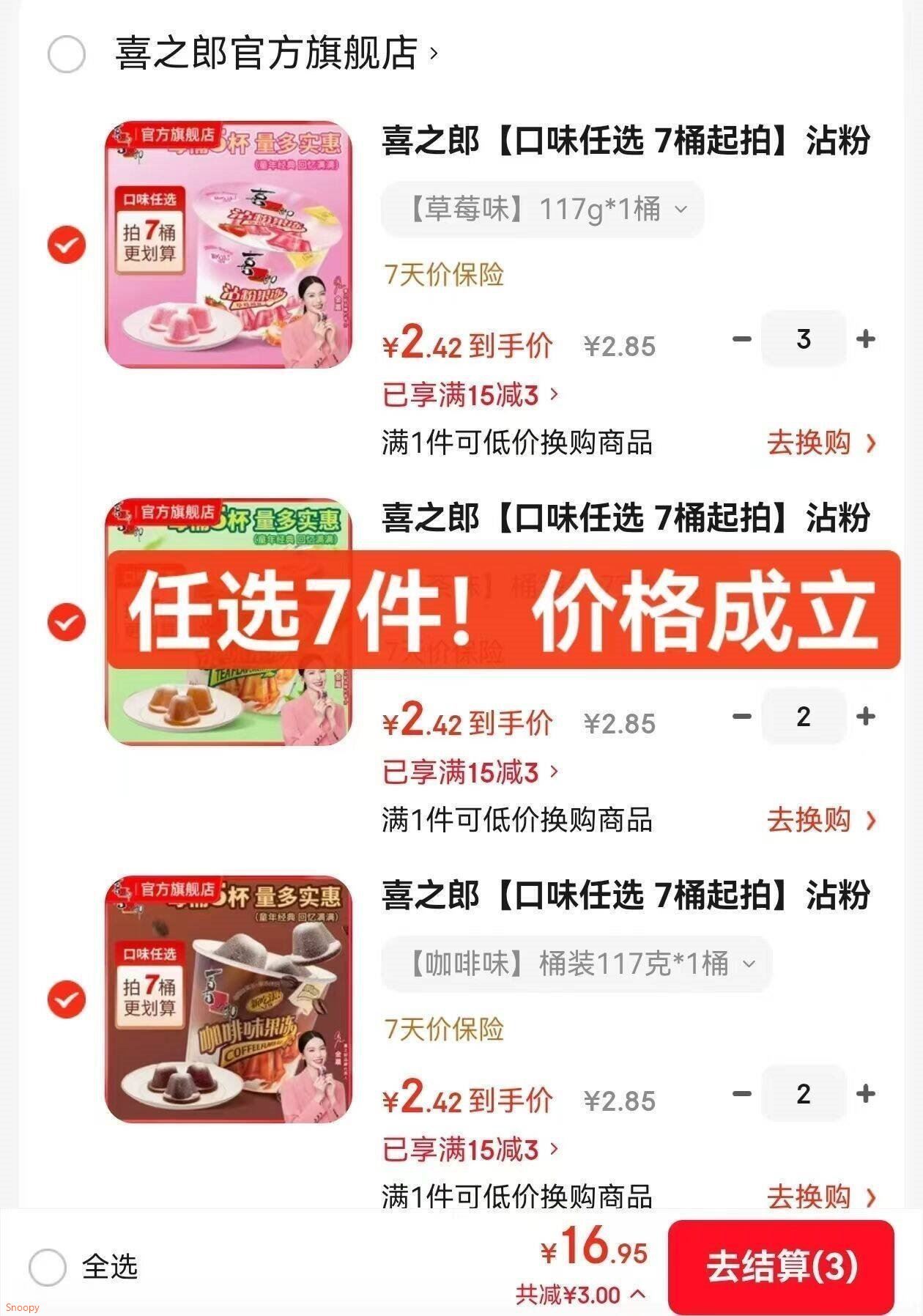 任选7件16.9元,折2.4元/桶