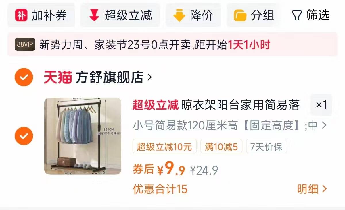 速晾衣架阳台家用简易 小号120厘米拍下9.9元好单发报员2026年03月22日 00:090举报 速晾衣架阳台家用简易小号120厘米拍下9.9元https://m.tb.cn/h.i6W84KH复制文案