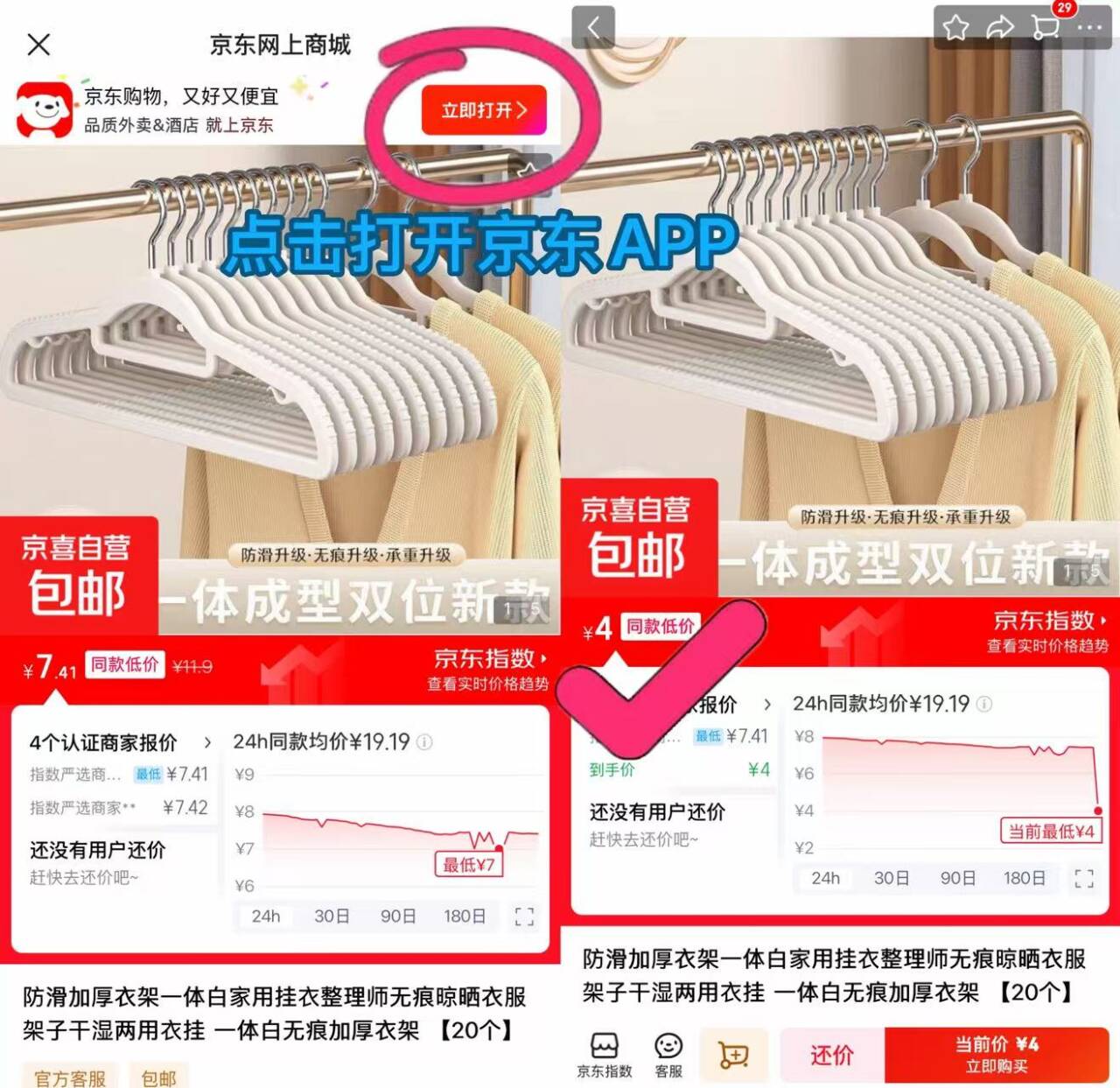 4元无痕防滑晾衣架20个