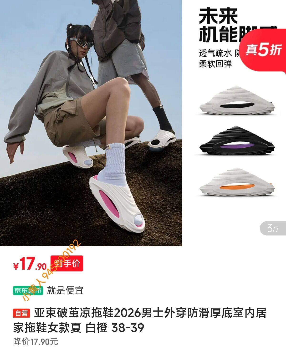 自营亚束 防滑厚底破茧凉拖鞋,17.9 好价!