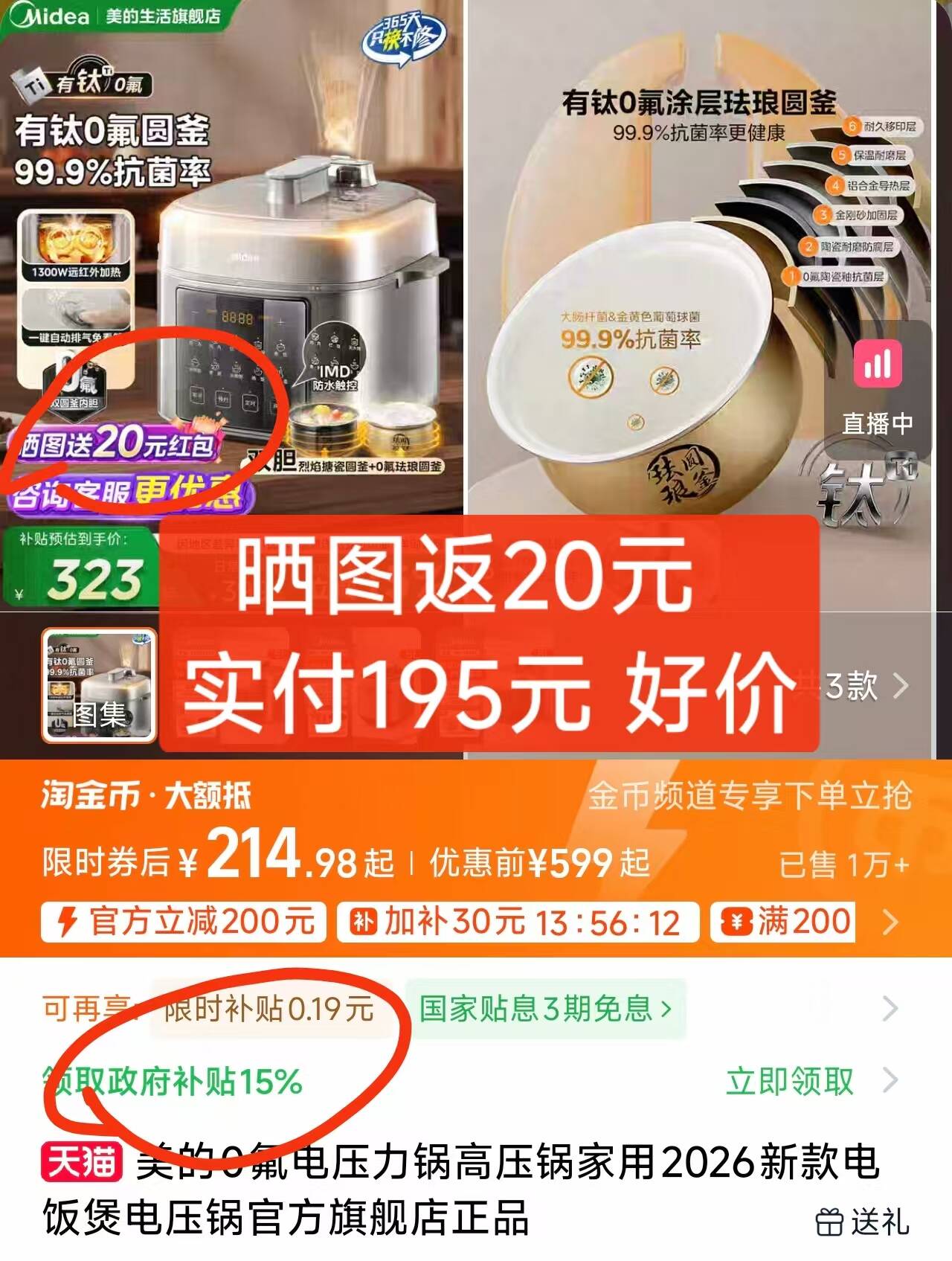 美的0氟电压力锅高压锅电饭煲