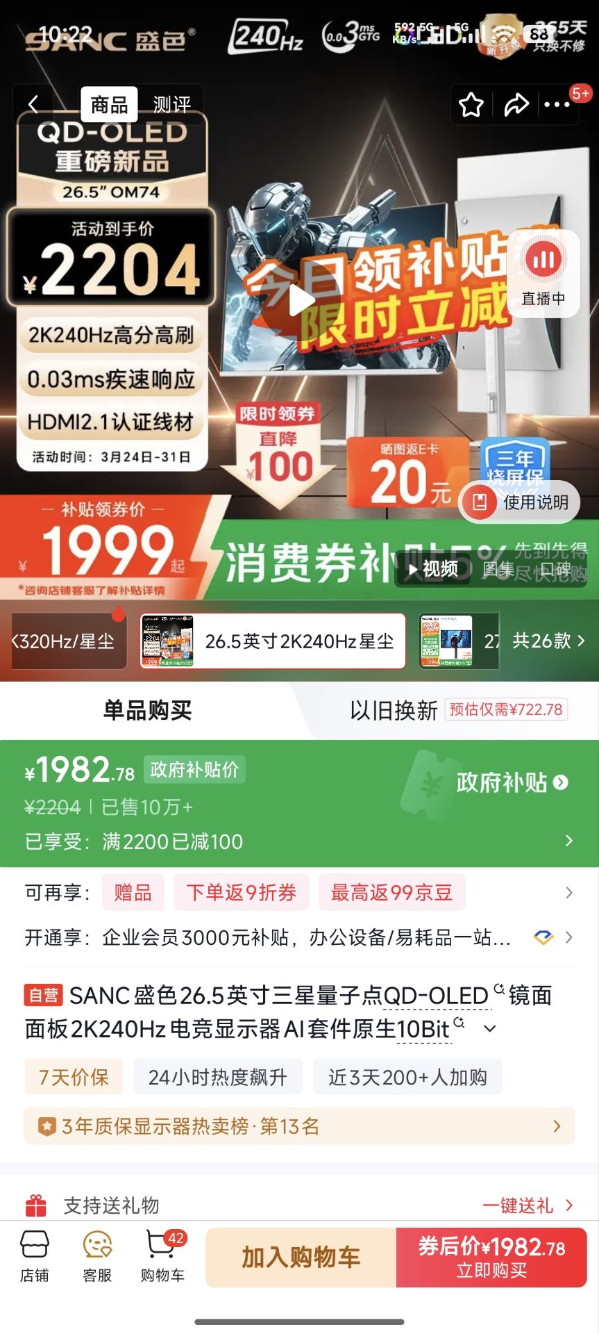 SANC盛色26.5英寸QD-OLED镜面面板2K240Hz显示器 1962元 好单发报员 2026年03月26日 10:44 0 举报 SANC盛色26.5英寸QD-OLED镜面面板2K240Hz显示器,叠国补【1962】嗮阪20E卡https://u.jd.com/cr3yIqe 复制文案
