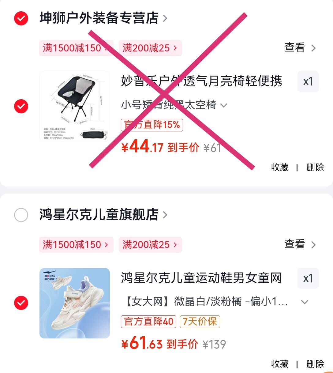 凑单任选1件付后退