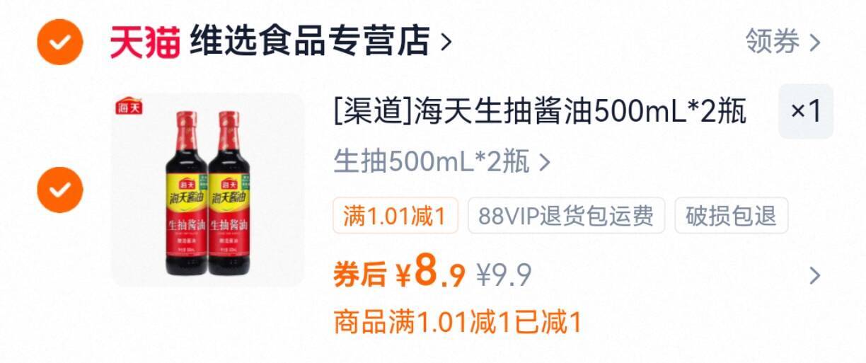 海天酱油 2瓶 8.9元 好单发报员 2026年03月28日 12:33 0 举报 快4.4元一瓶的海天酱油海天生抽500ml*2瓶8.9元鲜香浓郁超入味~居家必备https://m.tb.cn/h.iiUWL4x 复制文案