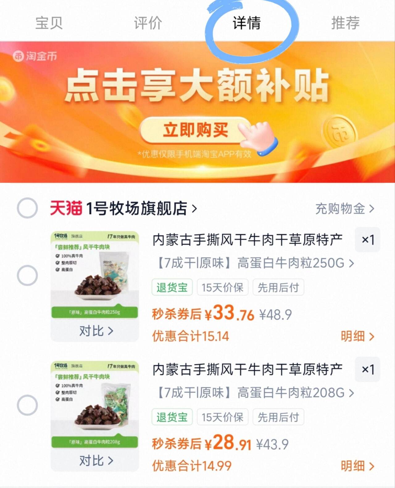 1号牧场内蒙古风干牛肉 28.9元