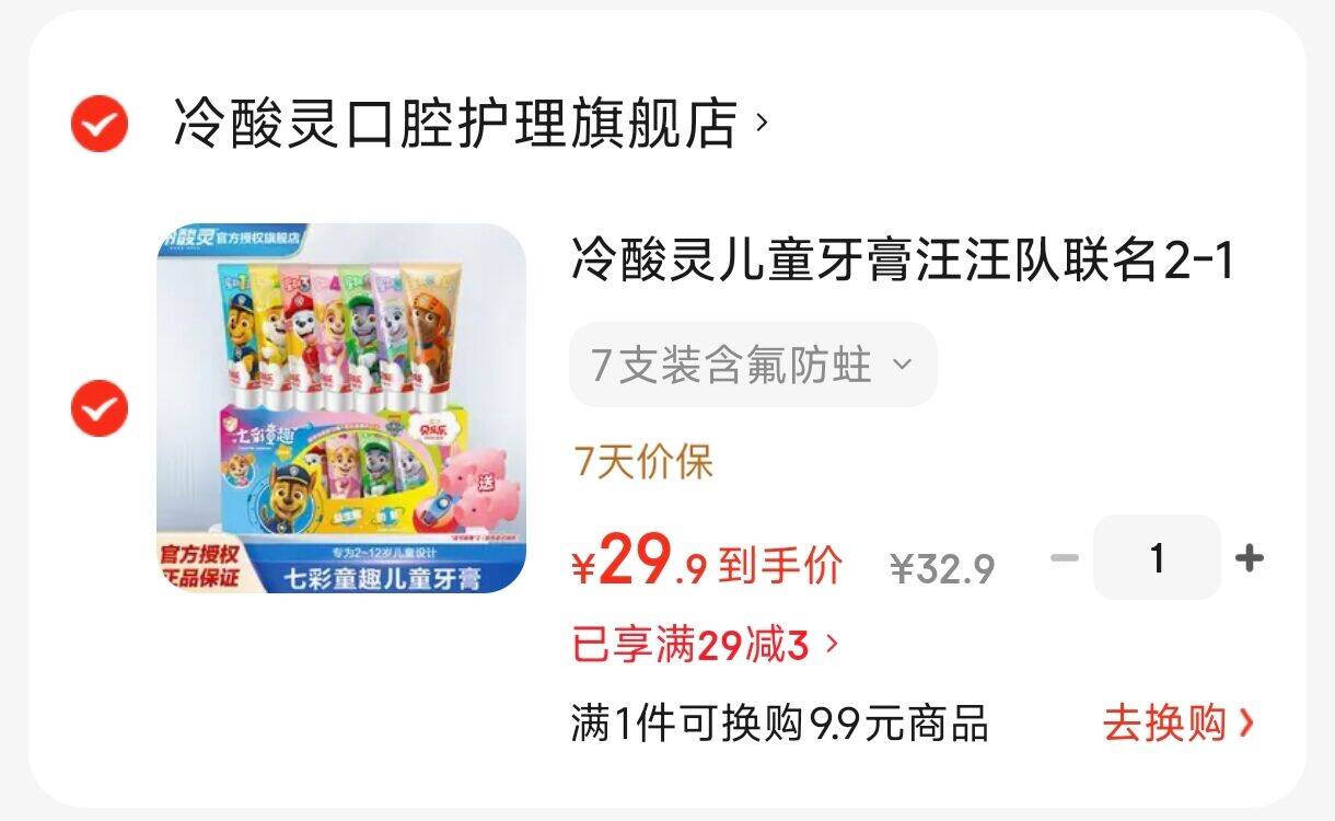 冷酸灵儿童含氟防蛀牙膏 29.9元