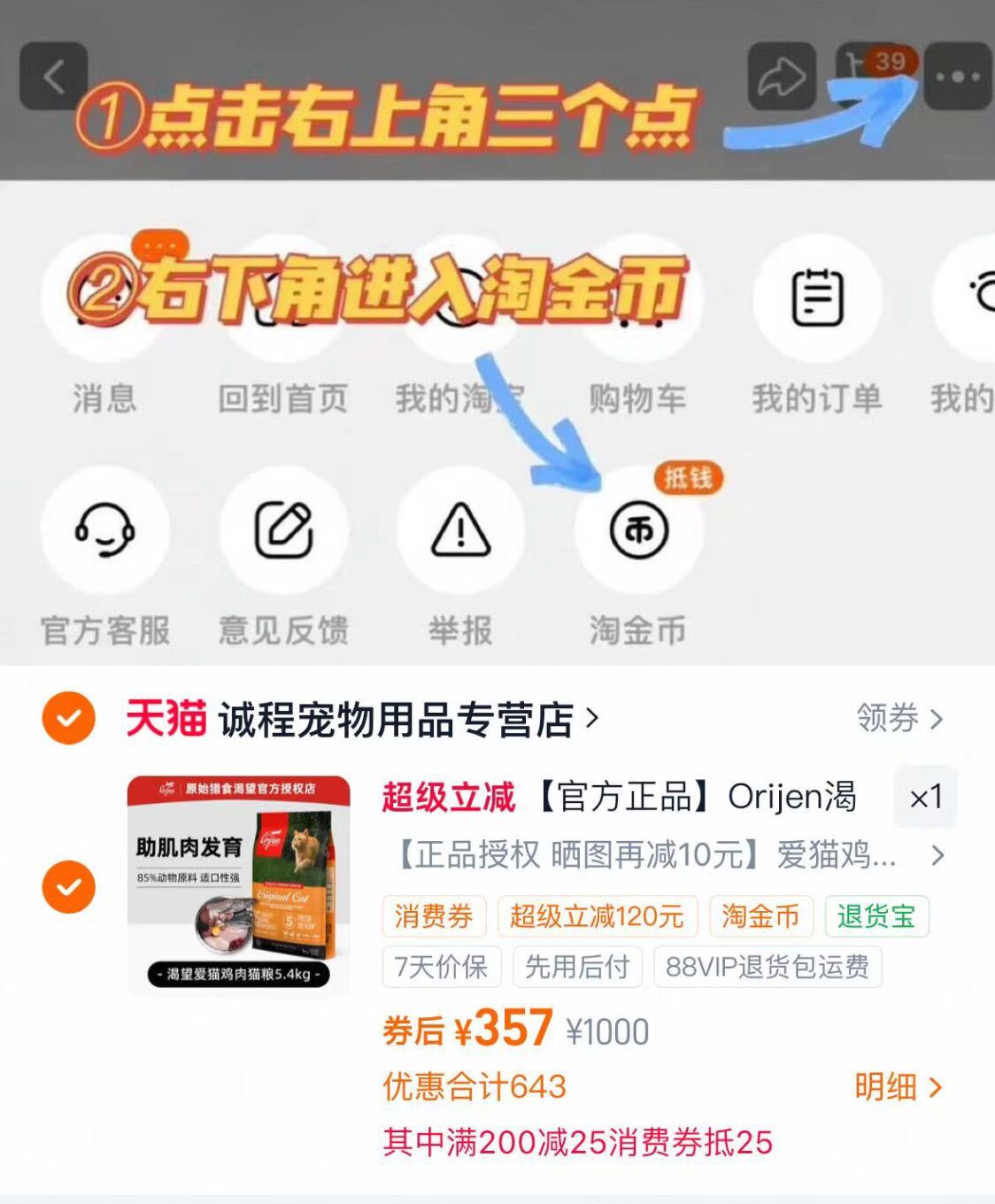 右上角[ ]-点"淘金币