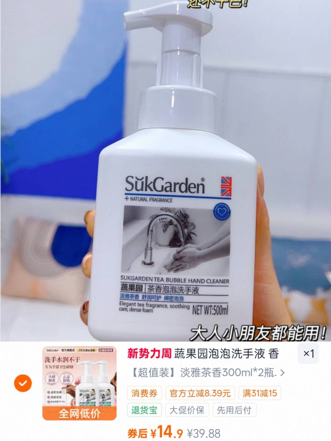 蔬果园茶香洗手液拍2瓶装 14.1元好单发报员2026年03月30日 14:470举报 上 蔬果园茶香洗手液叠加金币 拍2瓶装14.1元-茶香hin治愈 天然抑菌https://m.tb.cn/h.i89bNCG复制文案