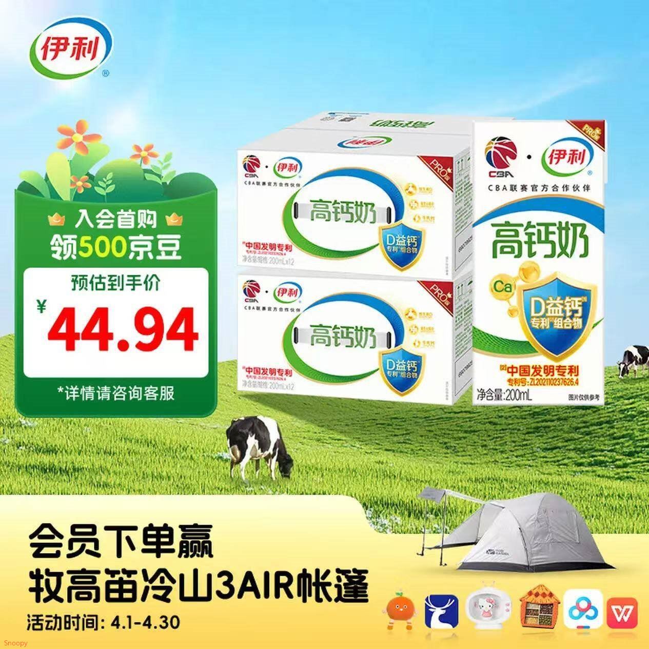 伊利 专利高钙牛奶12盒*2箱