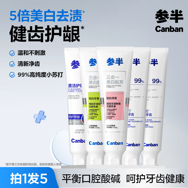 自营参半 净齿健白牙膏750g/5支