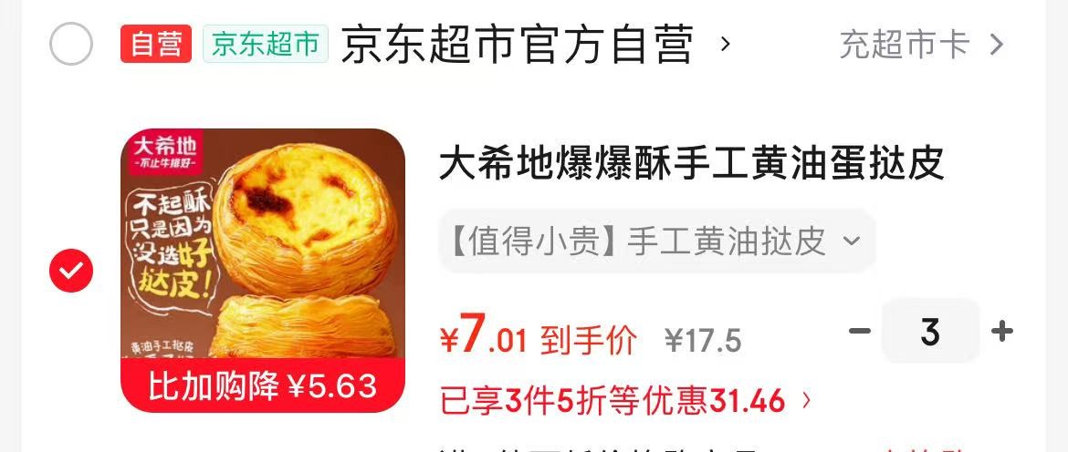 大希地 爆爆酥手工黄油蛋挞皮 400g 16个装 拍3件 每件7元
