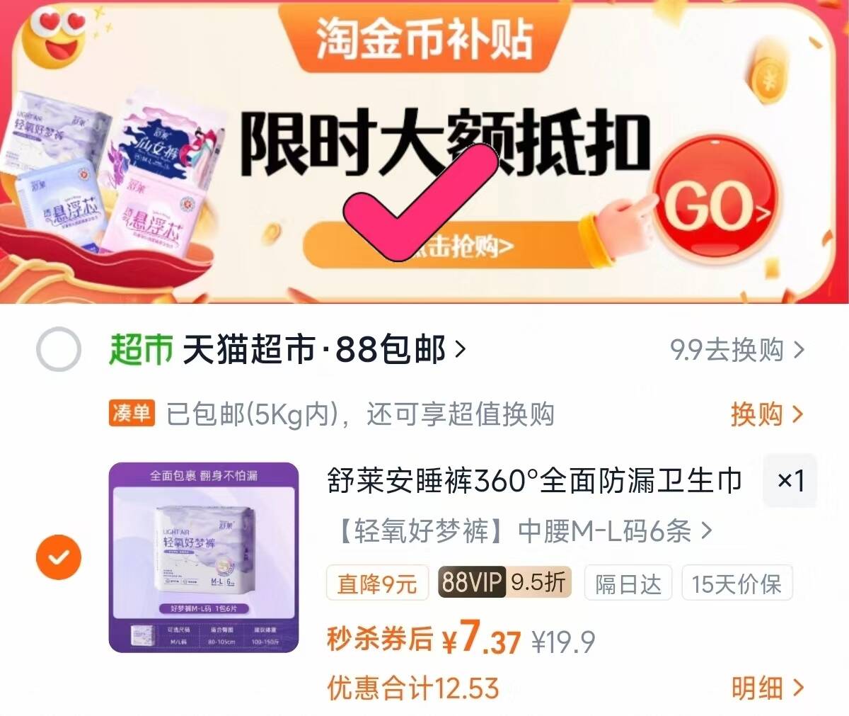 速舒莱卫生巾安睡裤M-XL共6条 7.3元好单发报员2026年04月02日 20:470举报 速 舒莱卫生巾安睡裤 下拉拍M-XL共6条vlp7.3元吸收超好防漏 高弹不勒肚子https://m.tb.cn/h.iQKOmSS复制文案