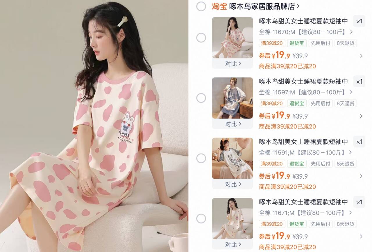 啄木鸟纯棉睡裙多款式可选 19.9元好单发报员2026年04月02日 22:110举报 啄木鸟 纯棉睡裙合集多款式可选,都19.9元他家品控高,还 纯棉的舒服天越来越热,薄款家居服安排https://m.tb.cn/h.i95yZDu复制文案