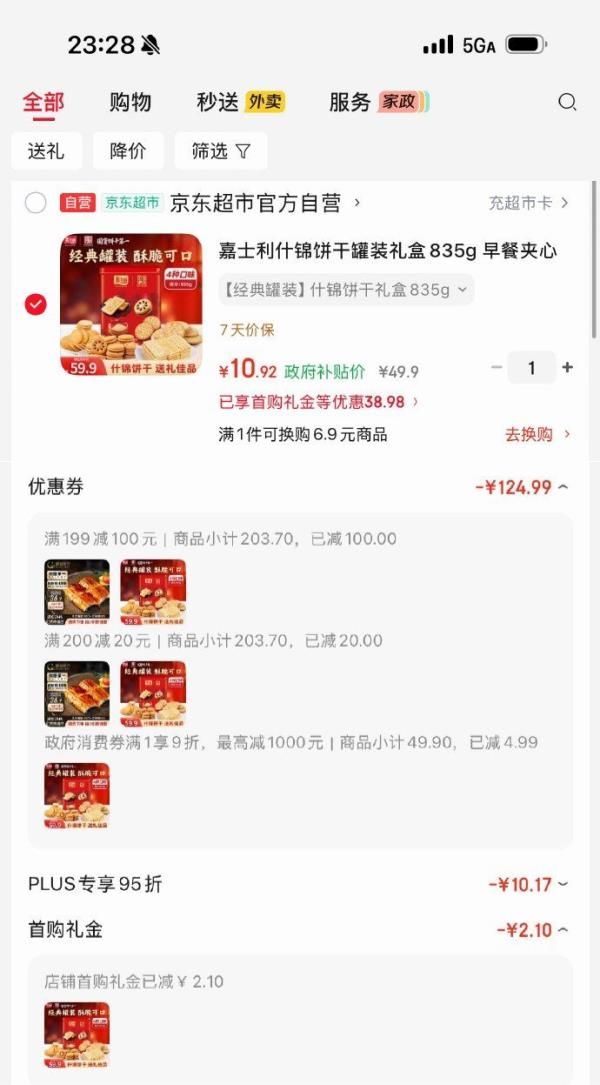 嘉士利什锦饼干罐装礼盒835g 拍2件 10.92元