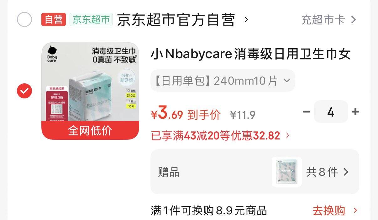 小N babycare消毒级卫生巾10片