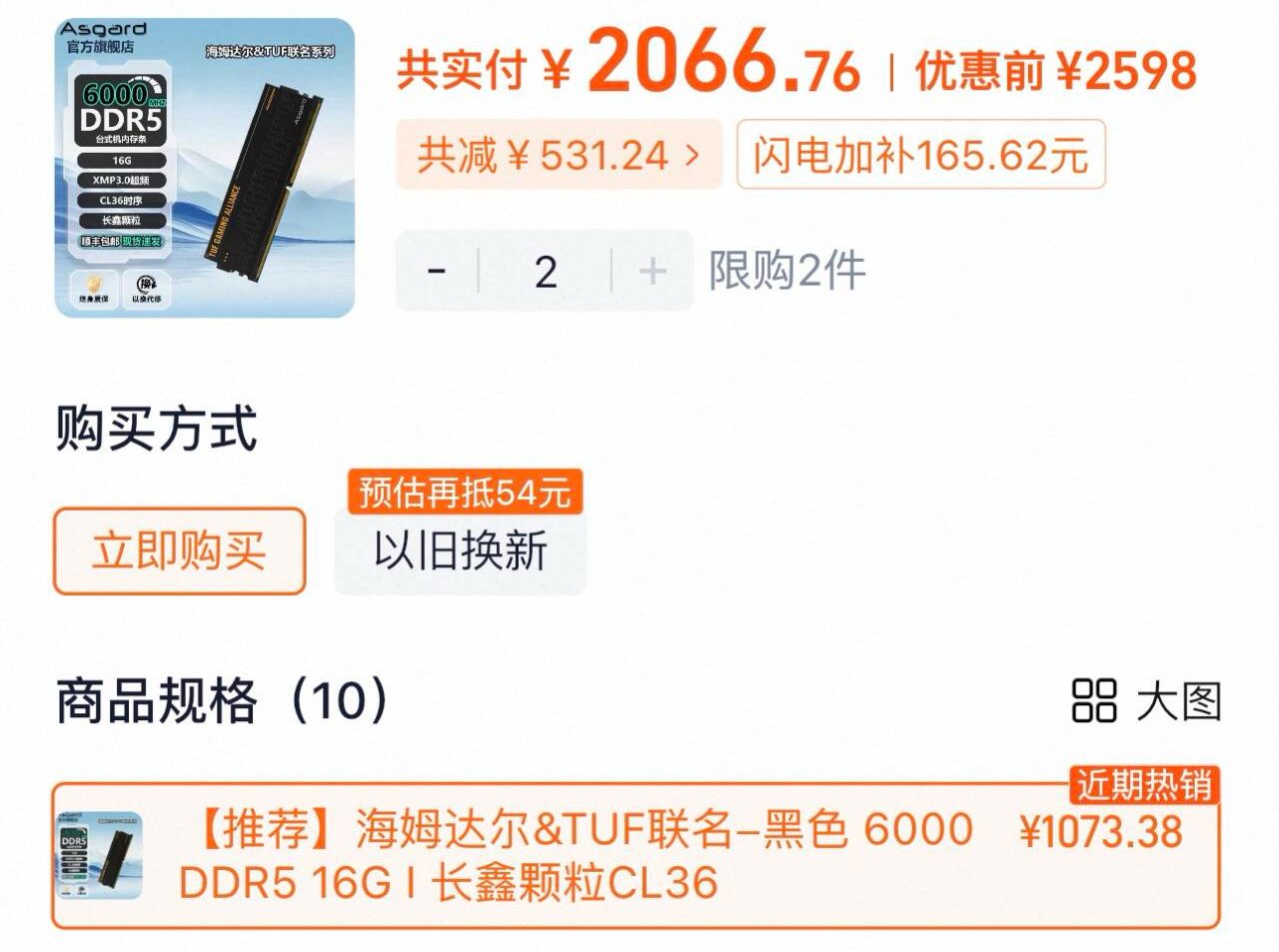 阿斯加特海姆达尔TUF联名16G ddr5 6000台式机内存条长鑫颗粒CL36 2066元发报员Z2026年04月10日 12:370举报 【拍2件2066】阿斯加特 海姆达尔TUF联名16G ddr5 6000台式机内存条 长鑫颗粒CL36①先收藏熵品复制这条信息打开手机陶宝https://m.tb.cn/h.imy1gU5②去首页-进百亿补贴-在百亿补贴页面-上方搜索框里搜索:阿斯加特复制文案