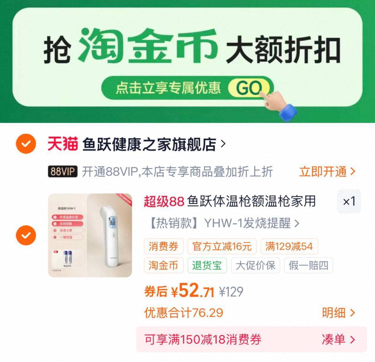 鱼跃额温枪 52.7元发报员Z2026年04月10日 12:500举报 52.7元下拉详情 鱼跃额温枪高清大屏还有发烧提醒 速 一键简単操作 用起来特别方便!https://m.tb.cn/h.imypOde复制文案