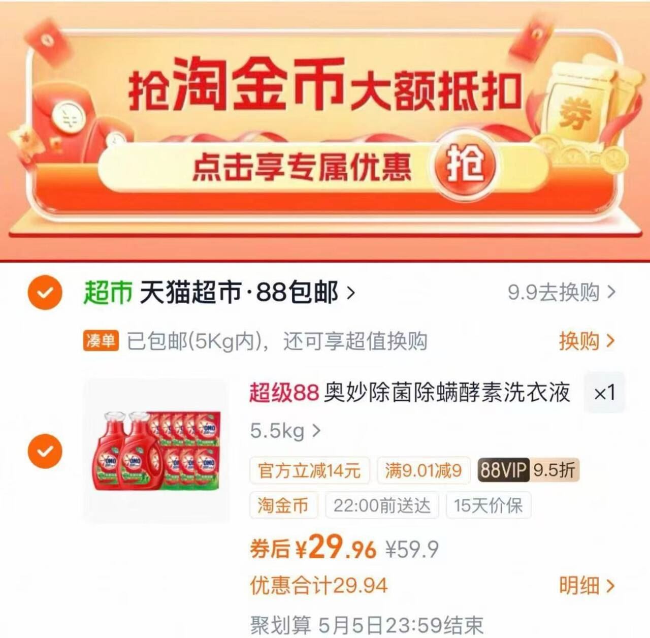奥妙除菌酵素洗衣液11斤 29.9元发报员Z2026年04月10日 23:350举报 猫..超好价!奥妙.除菌酵素洗衣液11斤下拉详情页【陶.金币抵扣】进去,拍下29.9元折2.7/斤!https://m.tb.cn/h.iMsKQfk复制文案