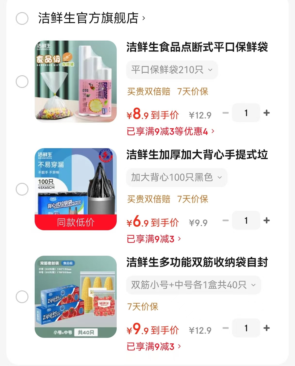 洁鲜生 食品点断式平口保鲜袋210只【8.9】