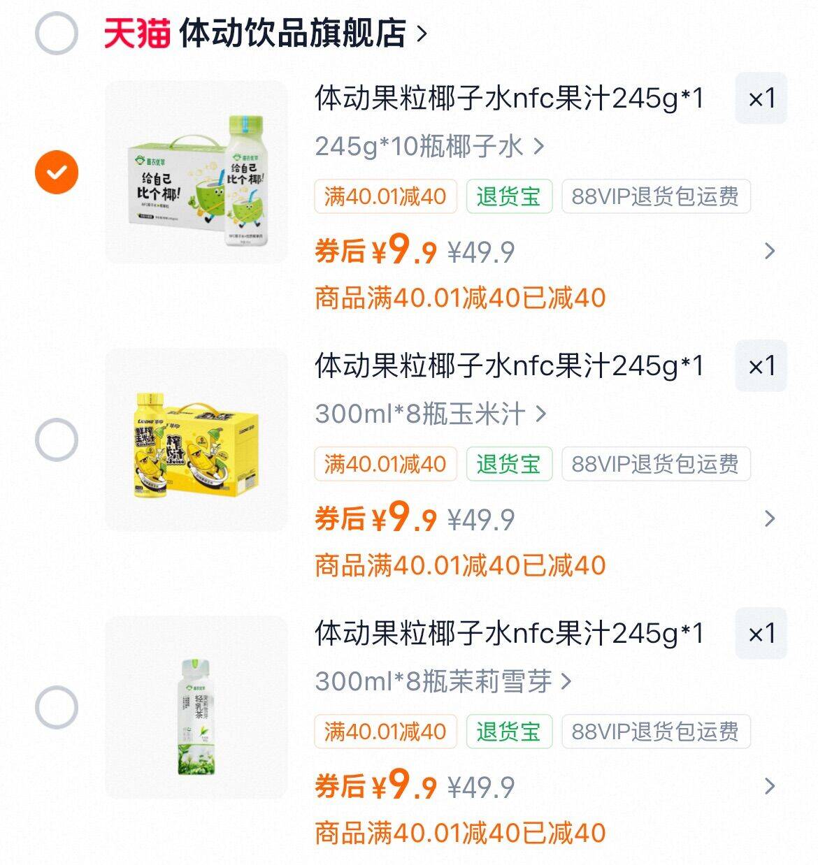 体动 NFC椰子水245g*10瓶 9.9元发报员Z2026年04月11日 12:260举报 9.9元,折0.9元/瓶 体动 NFC椰子水245g*10瓶https://m.tb.cn/h.iMagEE3复制文案