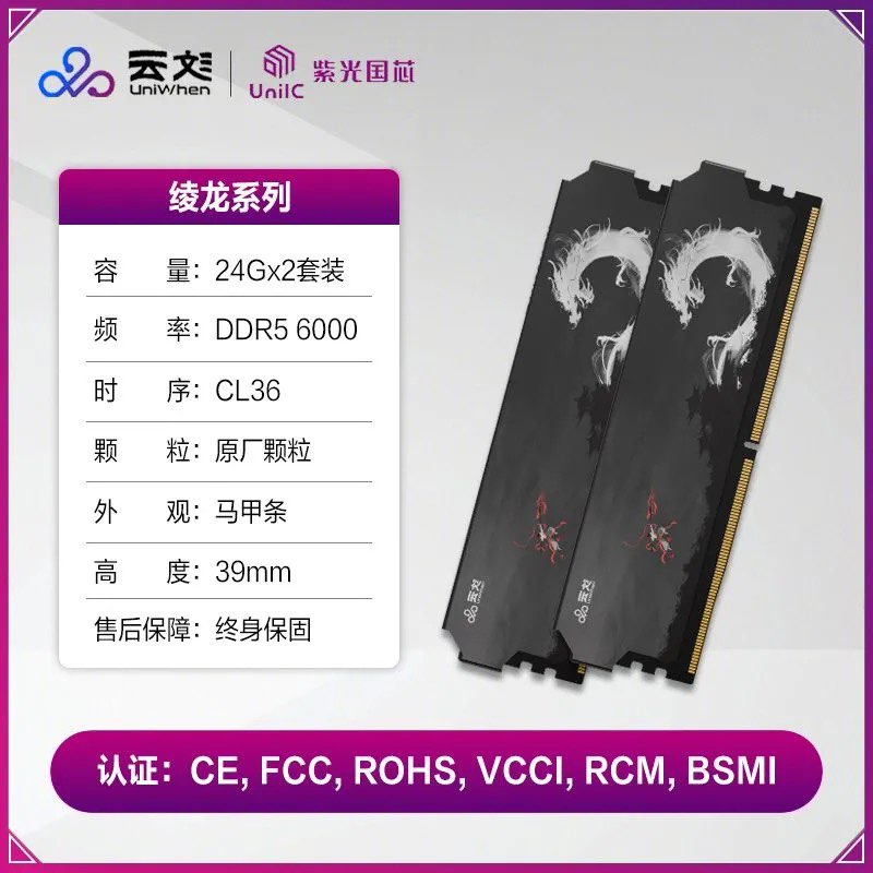 【2764】云彣紫光国芯48G套条 24Gx2内存条 DDR5 6000