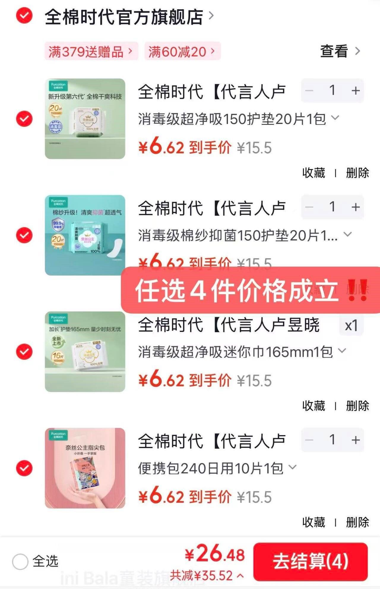 全棉时代卫生巾/安睡裤/护垫任选4件 26.4元发报员Z2026年04月11日 17:200举报 ——全棉时代个护任选——先領60-20补贴奍https://y-03.cn/1r0bvr全棉时代 卫生巾/安睡裤/护垫https://u.jd.com/jg1qeNb 任选4件26.4元,低至0.3/片*全棉干爽 多系列任你挑选复制文案