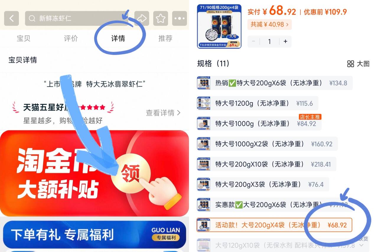 国联水产大号虾仁68.9元