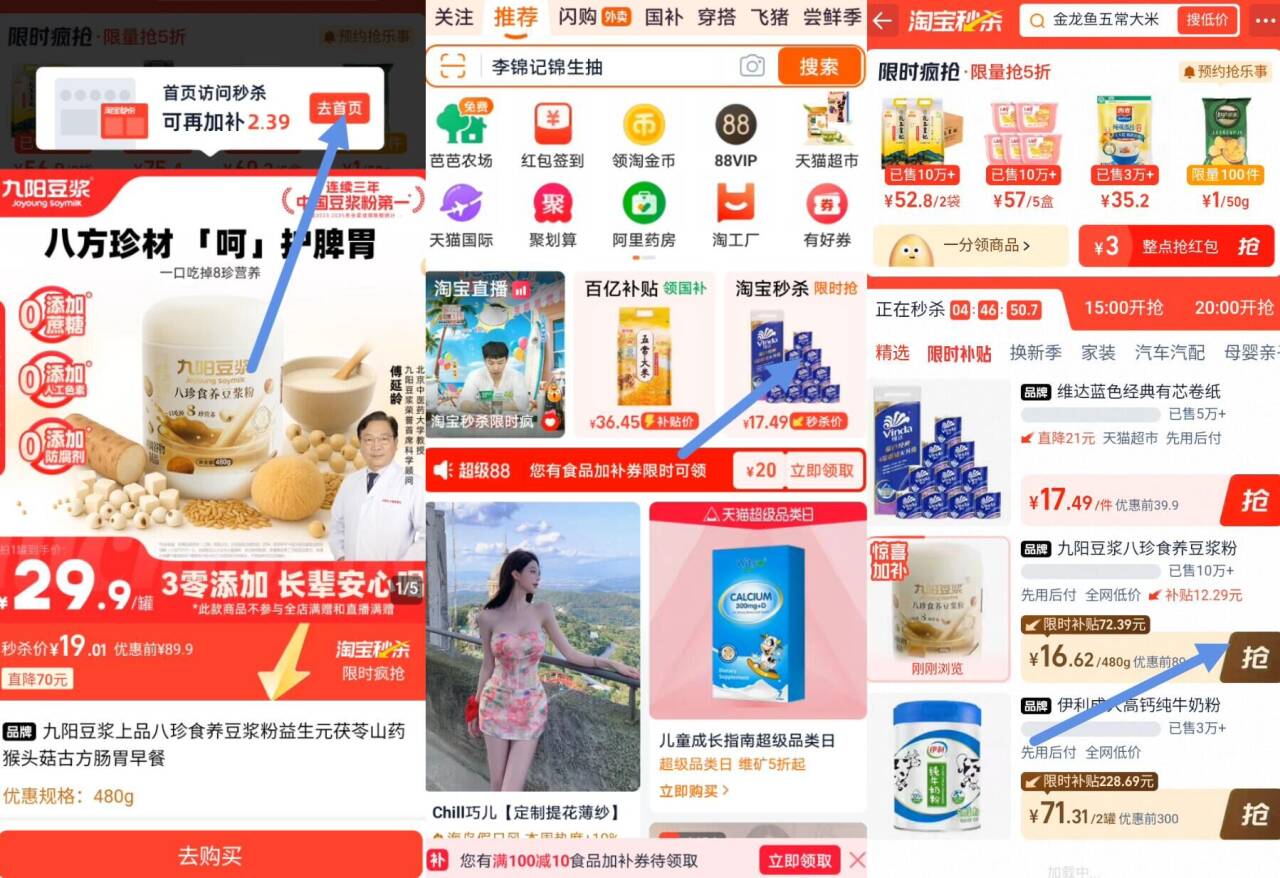 九阳八珍食养豆浆粉480g 16.6元 发报员Z 2026年04月14日 11:04 0 举报 限时补贴冲 无券拍下16.6元【九阳】八珍食养豆浆粉480g①顶部点 去首页-淘宝秒杀②秒杀页面找到商品拍下https://m.tb.cn/h.ipkCRvw 复制文案