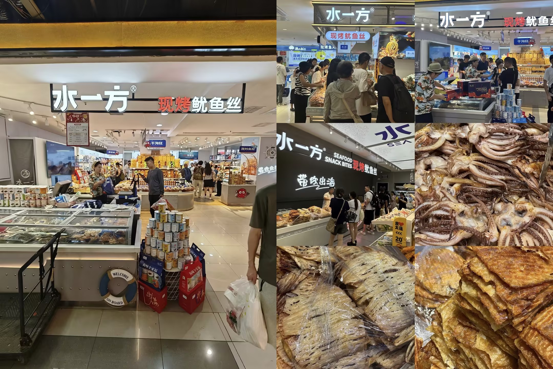 有实体店!品质也很过硬,如果喜欢吃鱼片鱿鱼干的,一定要试试水一方的