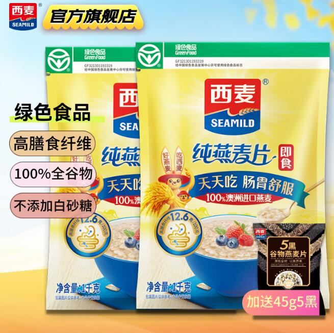 西麦 100%澳洲进口燕麦片1kg*2袋 赠品45g
